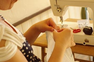 型紙の扱い方・布の裁断の仕方・裁ちハサミの持ち方・待ち針の刺し方・糸のこと・ミシンの扱い方など、こんなこと聞いてもいいのかな?というようなことまでしっかりご説明いたします。