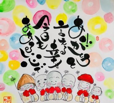 簡単なお地蔵さんの描き方を楽しみながら、言葉や漢字などの葉書4枚の作品を仕上げる