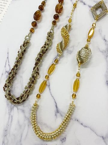 針と糸でビーズを編み上げるジュエリーメイキングの一つです。