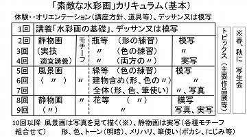 10回目以降…風景画は写真を見て描く 静物画は実写(各種モチーフ組合せて)形、色、トーン(明暗)、メリハリ、筆使い(ボカシ、にじみ等)