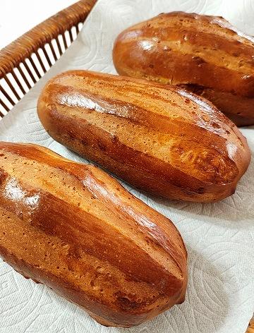②生地に卵白を入れ、牛乳で仕込み、クラフトに張りを作るパンです。