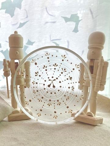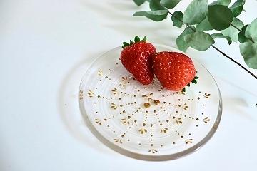 透明なガラスのお皿に、専用のゴールドの絵の具で
