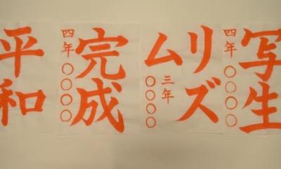 毛筆:書道用具、新聞紙、雑巾、必要な方のみ(半紙20枚100円、墨液378円、濃墨432円)