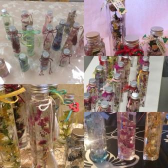 毎月季節のカラーに合わせてオーナメントなどを入れて季節感のあるハーバリウムを作ります。